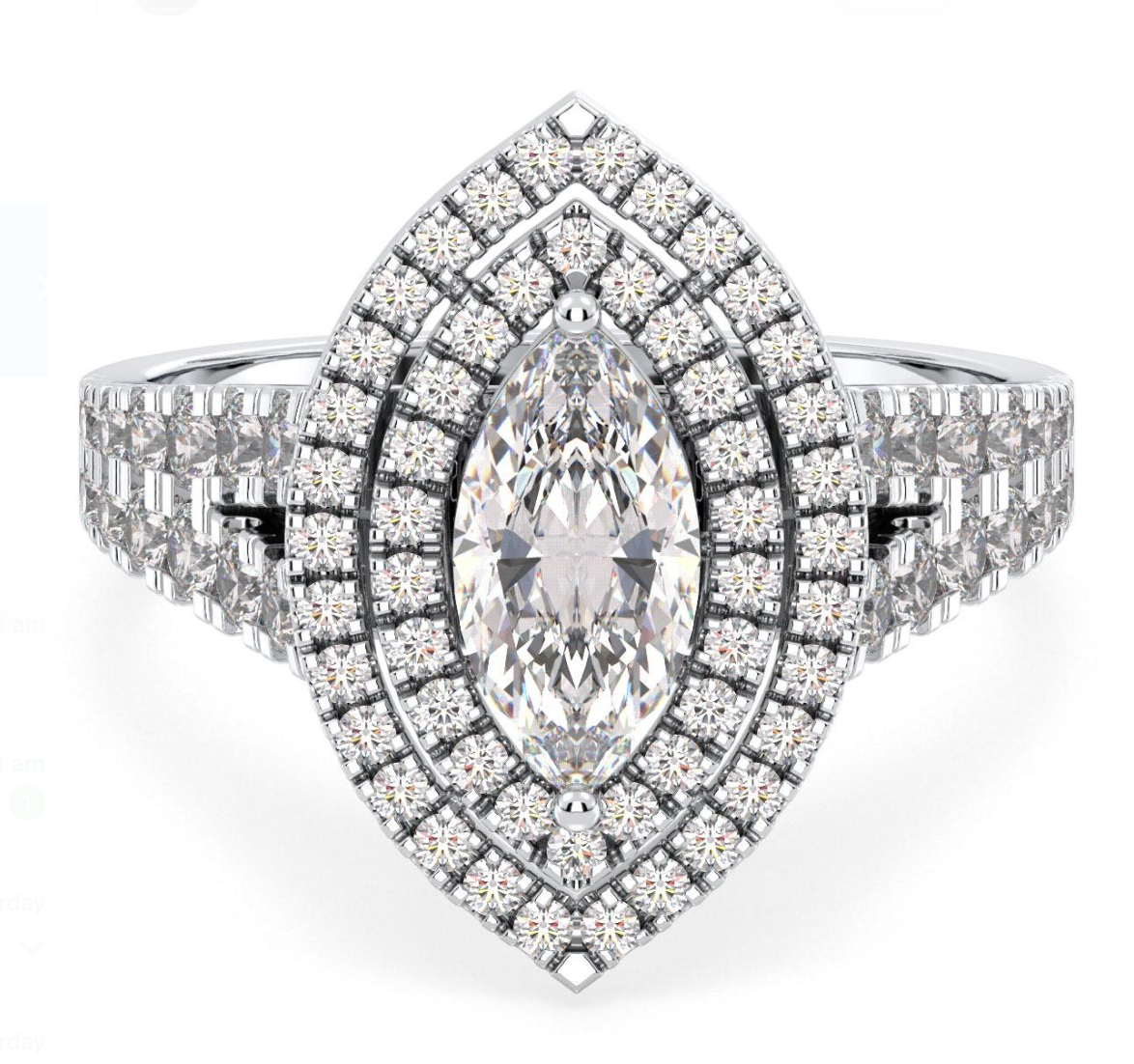 Moissanite Diamond Ring - marquise shape - خاتم الماس موزنايت