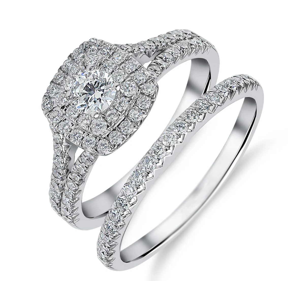 Wedding Moissanite Diamond Ring - خاتم الماس موزنايت - توينز قطعتين