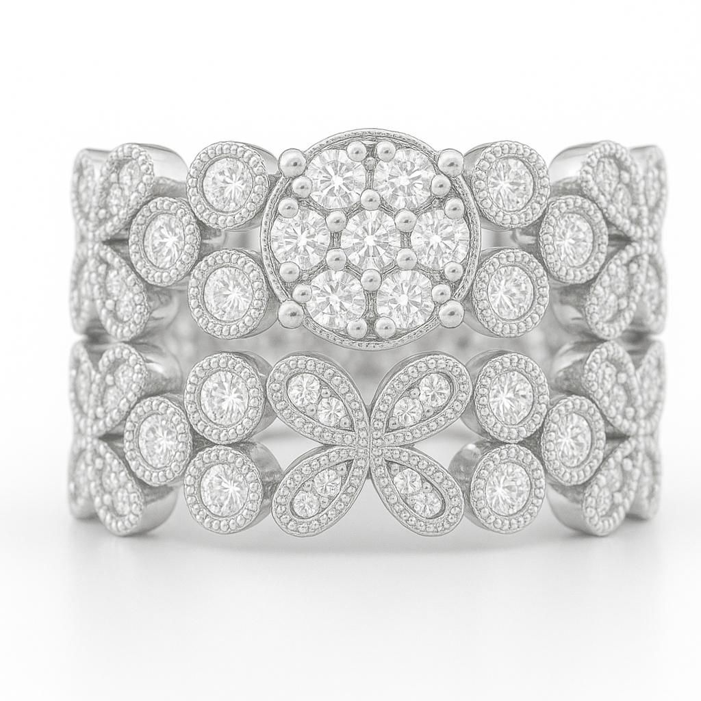 Flower Moissanite Diamond Ring - خاتم الماس موزنايت - قطعتين