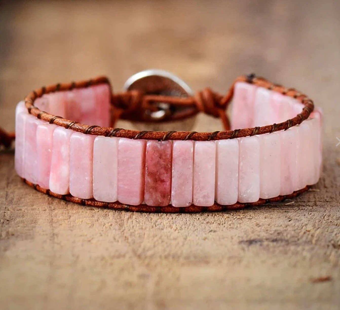 PINK OPAL LEATHER BRACELET - اسوارة الاوبال الوردي | ثقة، اصرار، محبة، قرارات