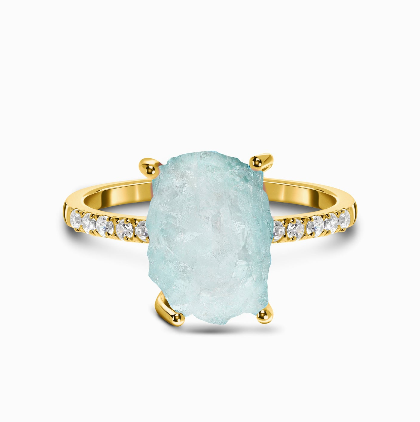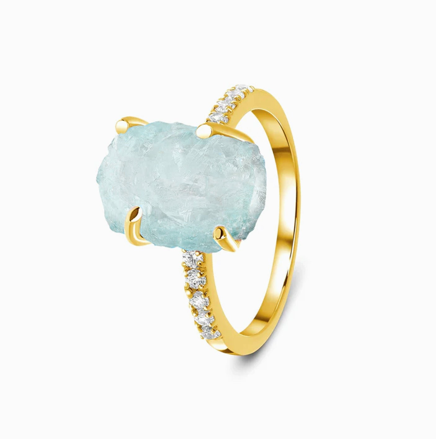 Aquamarine Raw Crystal & White Topaz Ring - أكوامارين وتوباز ابيض