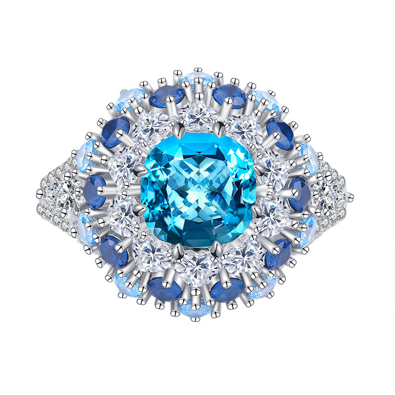 Sapphire & Blue Topaz & White Topaz Ring - خاتم الياقوت الازرق و التوباز الازرق