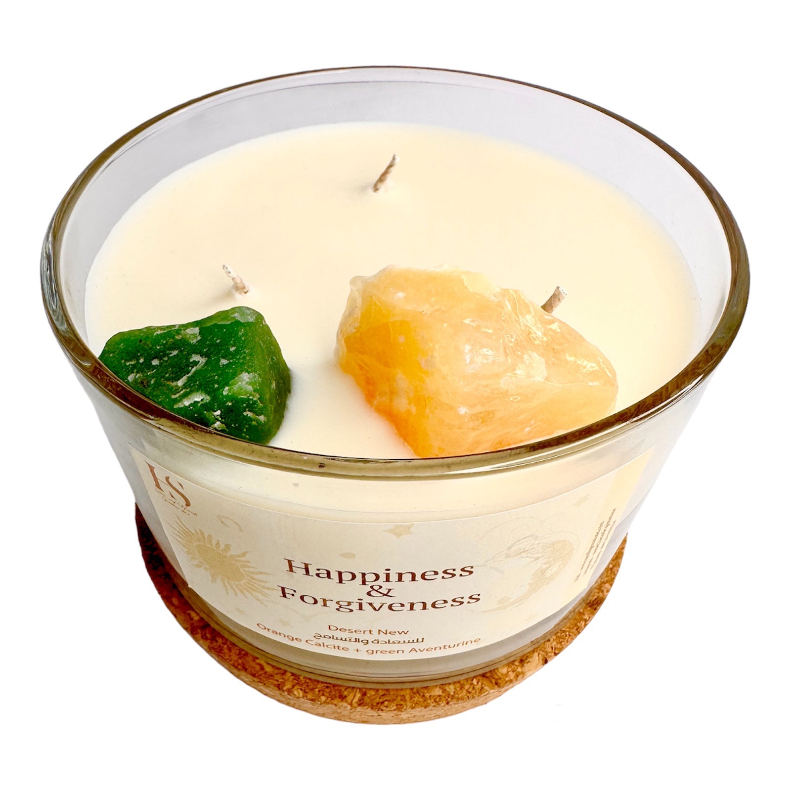 للتسامح، السماح بالرحيل والسعادة تحتوي الشمعة على حجر الافنتورين وحجر الكالسايت البرتقالي الرائحة تعزز اتساع القلب وشعور الانشراح تساعد على تجاوز القيود وترفع ذبذبات الحرية والاقبال على الحياة وجود حجر الافنتورين الاخضر - يساعد على موازنة شاكرا القلب و التخلص من طاقة الحقد والكراهية والرغبة بالانتقام ويرفع من ذبذبات الفرح الكالسايت البرتقالي يعزز ذبذبات البهجة ويساعدك على اكتشاف شغفك ورسالتك الروحية