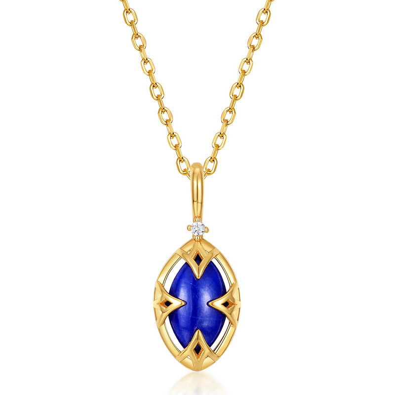 Vintage Lapis Lazuli White Crystal Double-side Neckless- قلادة حجر الازورد