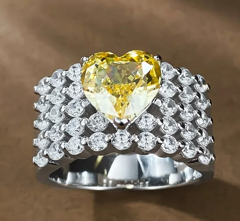 Yellow sapphire & White Topaz Ring ياقوت اصفر وتوباز ابيض